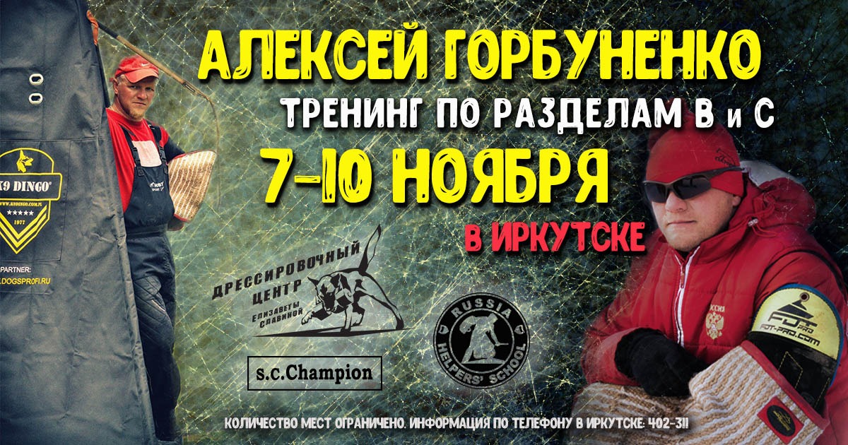 С 7 по 10 ноября 2019 года в городе Иркутске состоится тренинг по послушанию и защите с Алексеем Горбуненко (г.Екатеринбург).