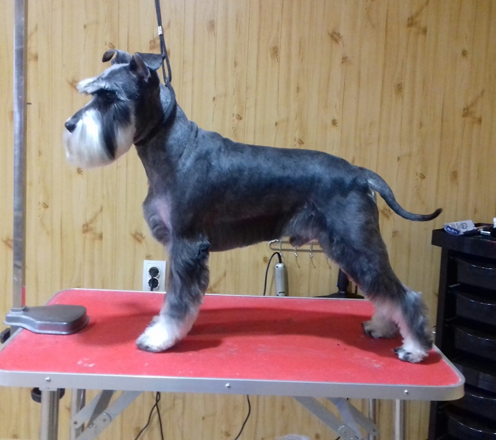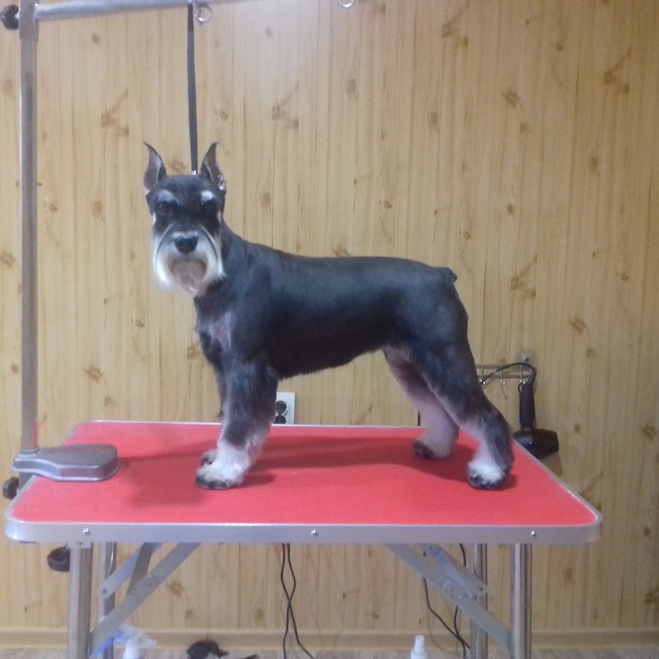Марина, добрый день! Спасибо, за то, что оценили мою работу! Сейчас объясню свою позицию по поводу триминга цвергов. Когда мне звонят владельцы, я по телефону подробно расспрашиваю, что они хотят сделать со своей собакой. И терпеливо объясняю им, чем отличается шерсть стриженая от выщипанной. Я объясняю также, что нельзя чередовать стрижки и триминг. Или мы собаку всегда тримингуем или переходим на стрижку. Спрашиваю, планируют ли посещение выставок! Часть шнауцеров тримингуется, посмотрите выше, я размещала фото и цверга и миттеля. И выщипываем мы все: и уши, и горло, и прощипываем ноги. А есть владельцы, которые не хотят ждать, когда у их любимца шерсть созреет для триминга. Они хотят, чтоб шнауцер был опрятный и в короткой шерсти всегда! Ходят раз в 2-3 месяца. Чаще всего, после такого перерыва шерсть к выщипыванию не готова, и, честно скажу, мне больно делать собаке не хочется. Есть еще одна причина. Собаки с чувствительной кожей. Сколько ни щипай, собаке больно во время триминга, и обязательно кровоподтеки и воспаленная кожа. Владельцы это видят и, конечно, жалеют своих собак. И я их понимаю! Кобель, размещенный выше, ходит часто, вообще раз в 1,5 месяца.