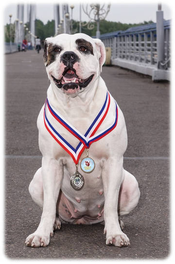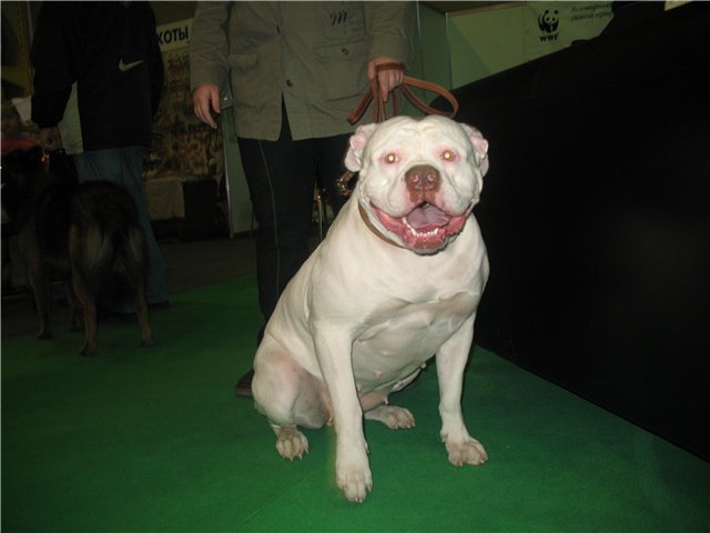 - Кому еще можно «прописать» американского бульдога? Тому кто ищет "все в одном флаконе", не только супер-характер и супер-рабочие качества, но и эффектный экстерьер. Американец хорош собой, имеет внешность в высшей степени незаурядную! Большая фактурная голова, серьезный взгляд, широченные плечи и сотканное из мышц крепкое широкое тело, белый окрас – все это делает американского бульдога неповторимым, ярким, красивым. Воплощенная мощь, драйв, как в дорогом внедорожнике – все это амбуль. Правда, стоимость щенков этой породы очень демократична, поэтому позволить себе эту собаку может каждый ответственный начинающий или опытный собаковод. Что потребуется амбулю? Ваша любовь, регулярные прогулки, своевременная дрессировка (таланты американского бульдога стоит раскрыть полностью – для вашего же собственного удовольствия). И получится у вас идеальная собака – на все лапы мастер. Настоящий американский бульдог все делает на отлично – стоит вам только захотеть!