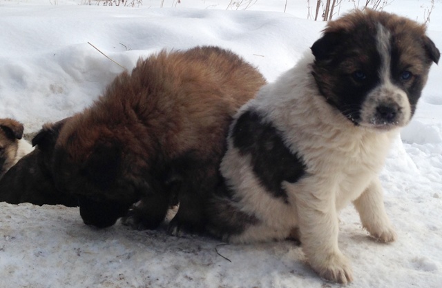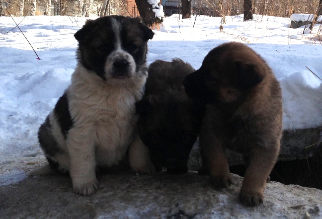 Ищу самых лучших хозяев для щенков. Родители беспородные, крупные. Щенки активные, общительные, возраст 1 месяц. Будут крупными, на овчарку похожими).