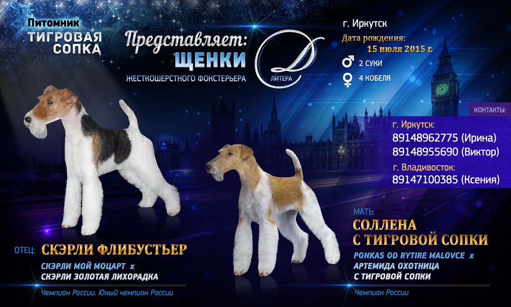 Предлагаются к продаже бело-рыжие щенки жесткошерстного фокстерьера. Шустрые, жизнерадостные крепыши. Благодаря им Ваш дом наполнится весельем и любовью.