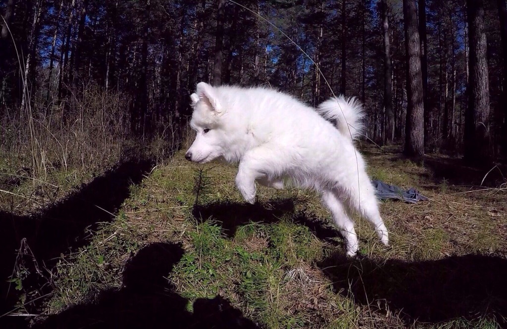 Элегантный, белоснежный, ухоженный, совершенно здоровый щенок, с богатой, плотной шерстью, не имеющей специфического запаха. У щенка яркий пигмент, обворожительная самоедская улыбка. Имеет хороший аппетит, растёт крепышом.