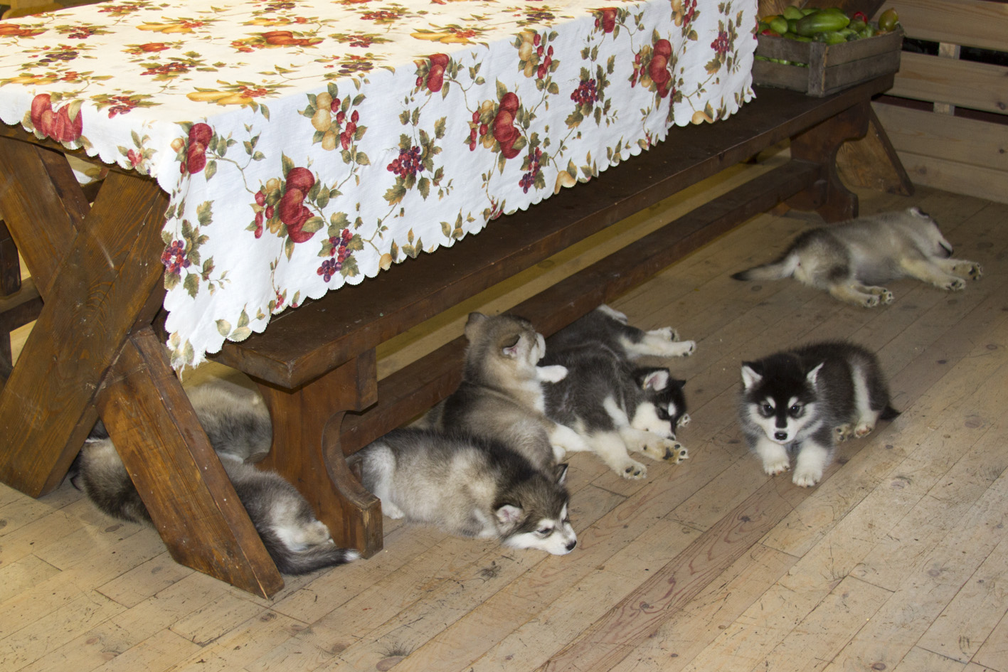 Родители отличаются отменным здоровьем, работают и летом и зимой. Третий и последний помет от этой пары. Кто хотел щенков от Зайки, имейте это ввиду. Свободны черно-белый мальчик и черно-белая девочка, серо-белая девочка очень похожа на Зайку, и серо-белый мальчик. Костяк крепкий, активные, выращивание в больших вольерах с доступом к познавательным прогулкам. Как живут и работают наши собаки видно на странице https://vk.com/progulkismalamutami Телефон в Томске 8-913-8455134 , пишите СМС - перезвоню
