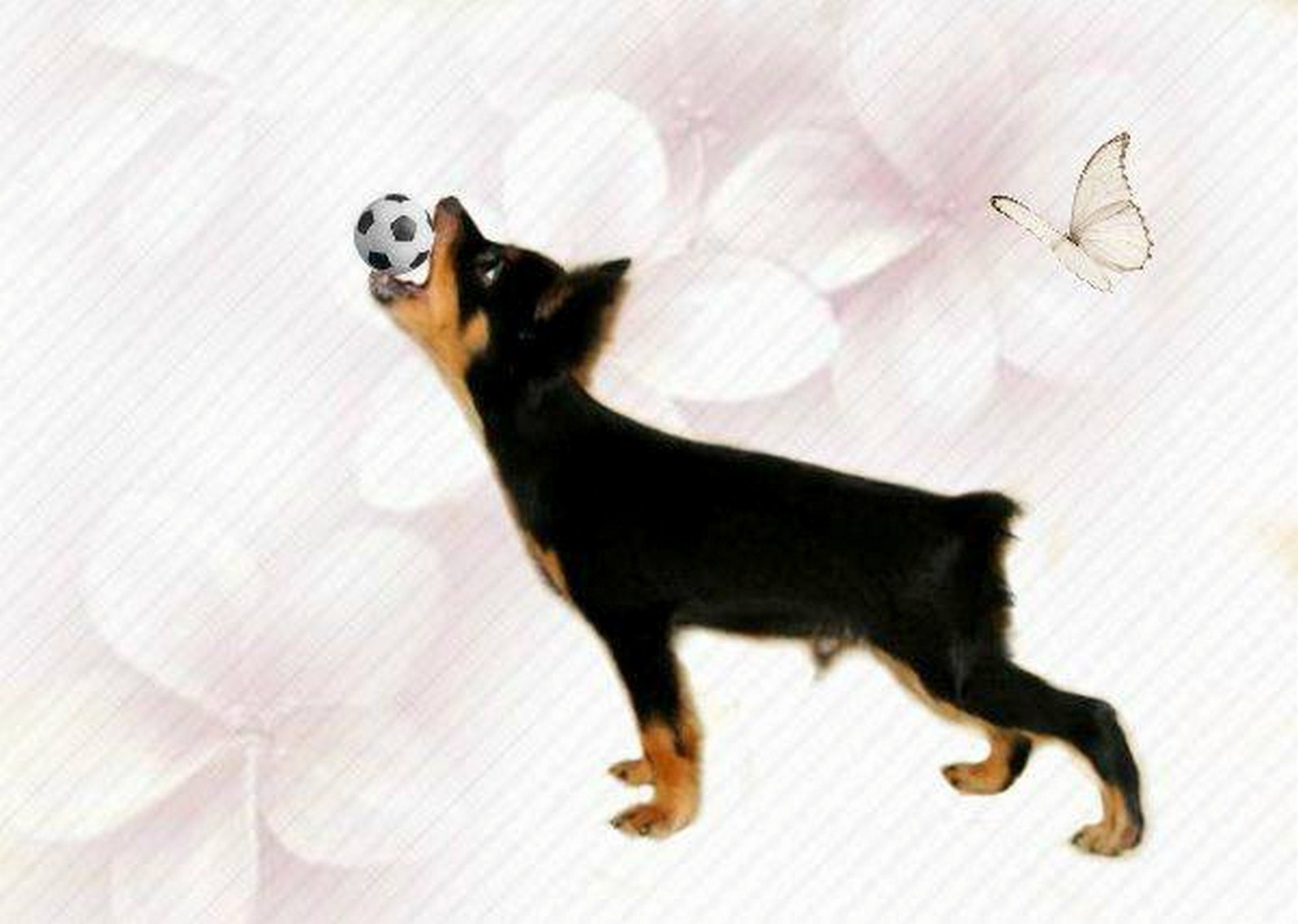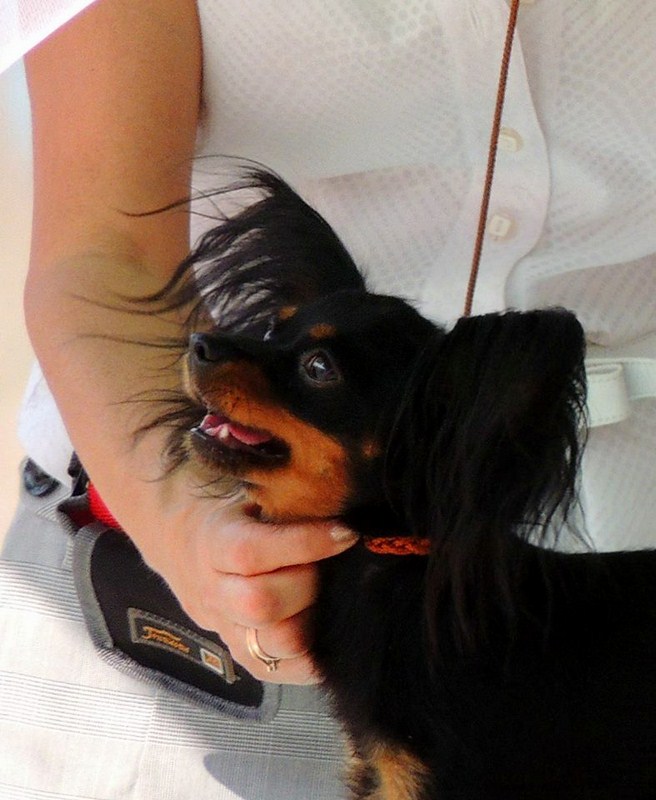 Компактный, не крупный, ровный верх, крепкий хрящ, предполагаеются хорошие очёсы на ушках, без брака (грыж, родников, заломов, белых отметин не было). Очень предан хозяйке (я уже начала к нему очень прикипать), любит поцелуйчики, он подарит вам неиссякаемую любовь. Больше похож на маму.