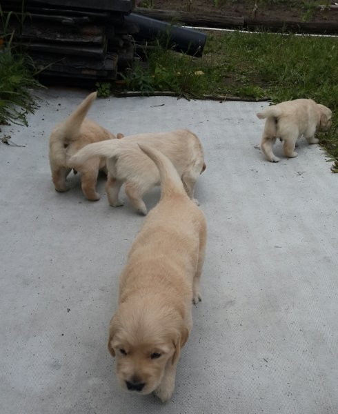 Щенки породы золотистый ретривер. Дата рождения 25.05.2014г. В помете 5 щенков - 3 кобеля и 2 суки.