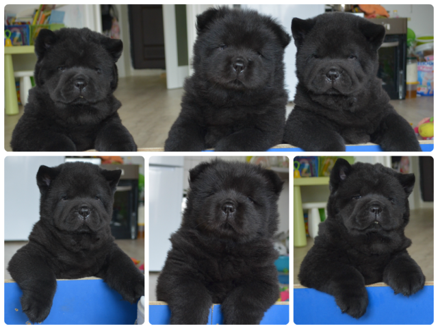 Предлагаются к продаже щенки чау-чау. Смуфы кобель, сука и пушистая сука, окрас черный, родились 12.07.14,