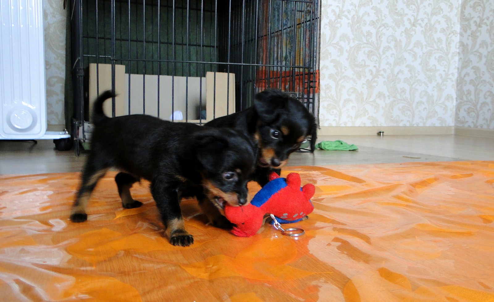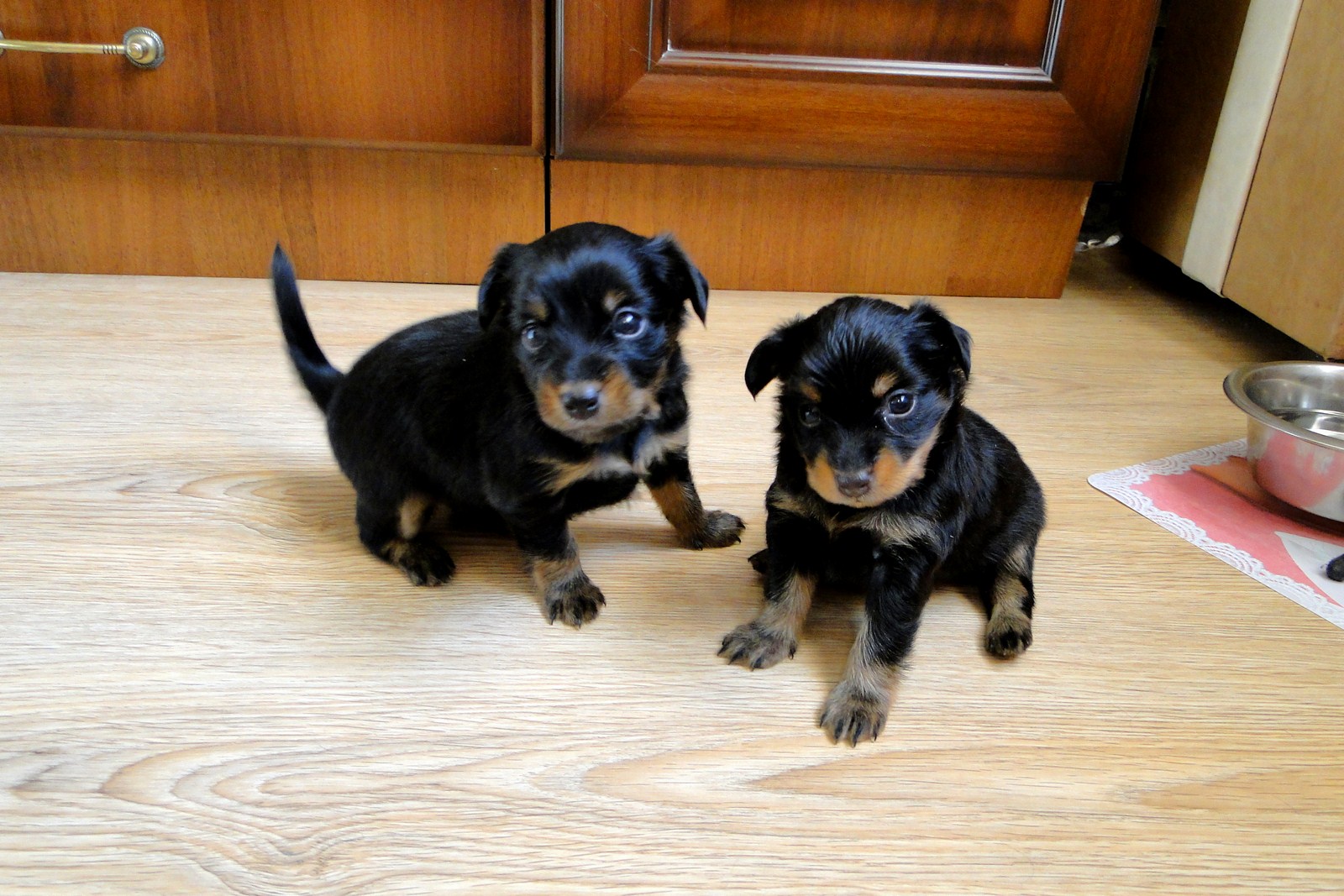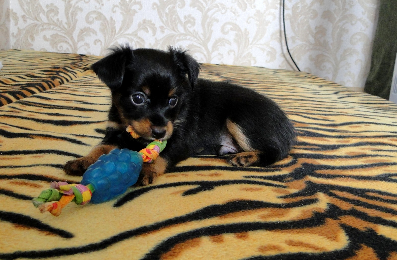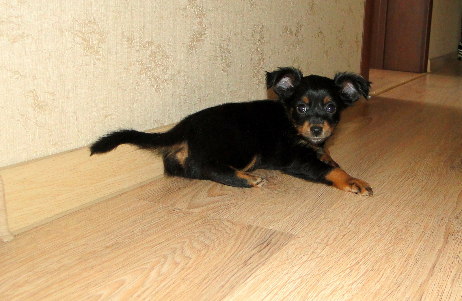 Генри заигрывает с дядей Йосиком (с нами живет гладкошерстный той терьер), ему со взрослыми то играть интересней, так как тот в свою очередь тоже на него замахивается лапами. А мама Шери, накормив банду, лежит и издалека наблюдает за всем этим и уже не оберегает детей от всех, как маленьких.