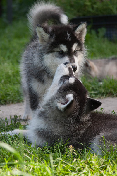 Два мальчика и четыре девочки. Чёрно-белые и серо-белые, пушистые и со стандартной шерстью. Щенкам три месяца, они полностью привиты, карантин пройден. Правильно выращены. Есть очень яркие, с красивой маской на морде. Документы РКФ. В родословных родителей самые известные маламутские имена: Skywalker Sausimayok, Rambler Huk Amarok, Storm Klouds Hhudson Icy Wind, собаки Del Blagio, Inditarod, Shamanrock....