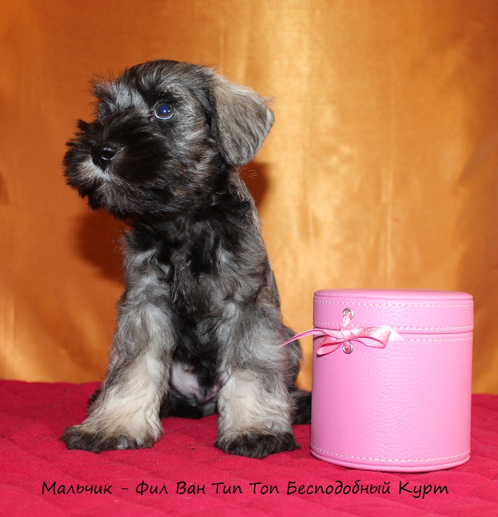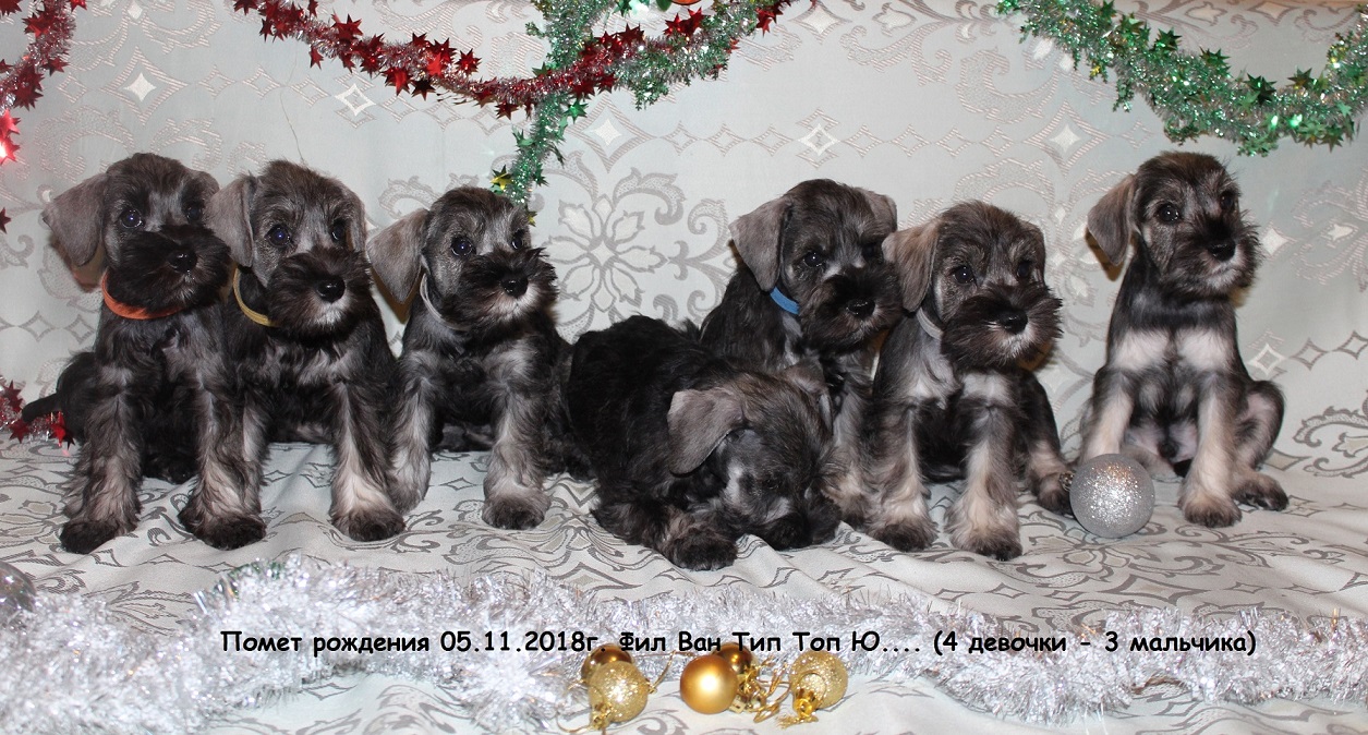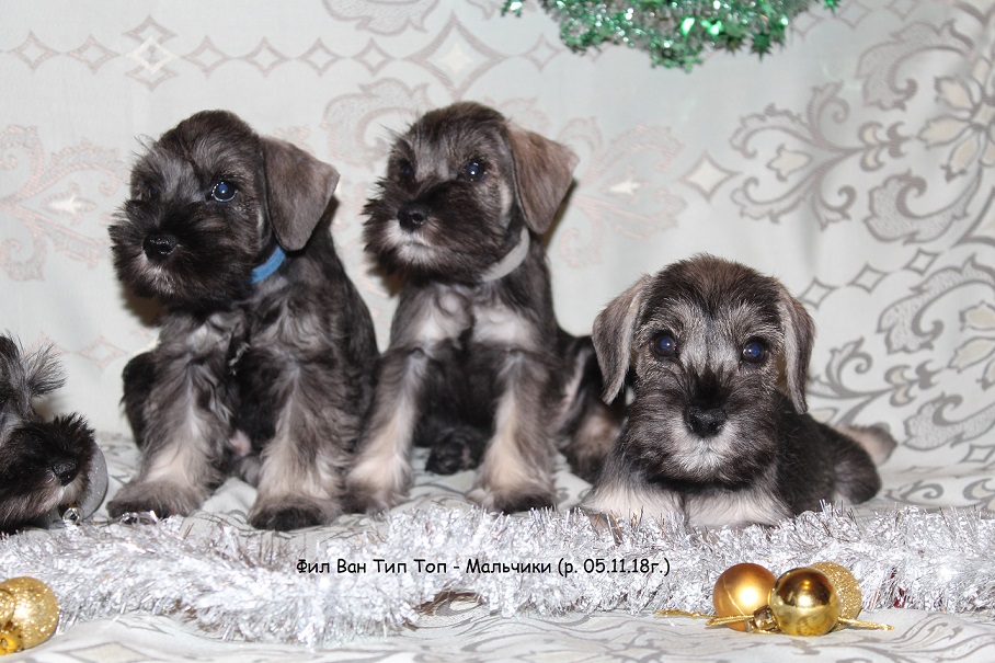 Питомник "Фил Ван Тип Топ" предлагает щенков Цвергшнауцера окраса перец с солью. Рождение 05 ноября 2018г. В поисках владельцев мальчики и девочки. Хвостики натуральные. У щенков отличная родословная РКФ. Папа из питомника "Русский Ассортик". Ищем щенкам любящие и ответственные ручки.