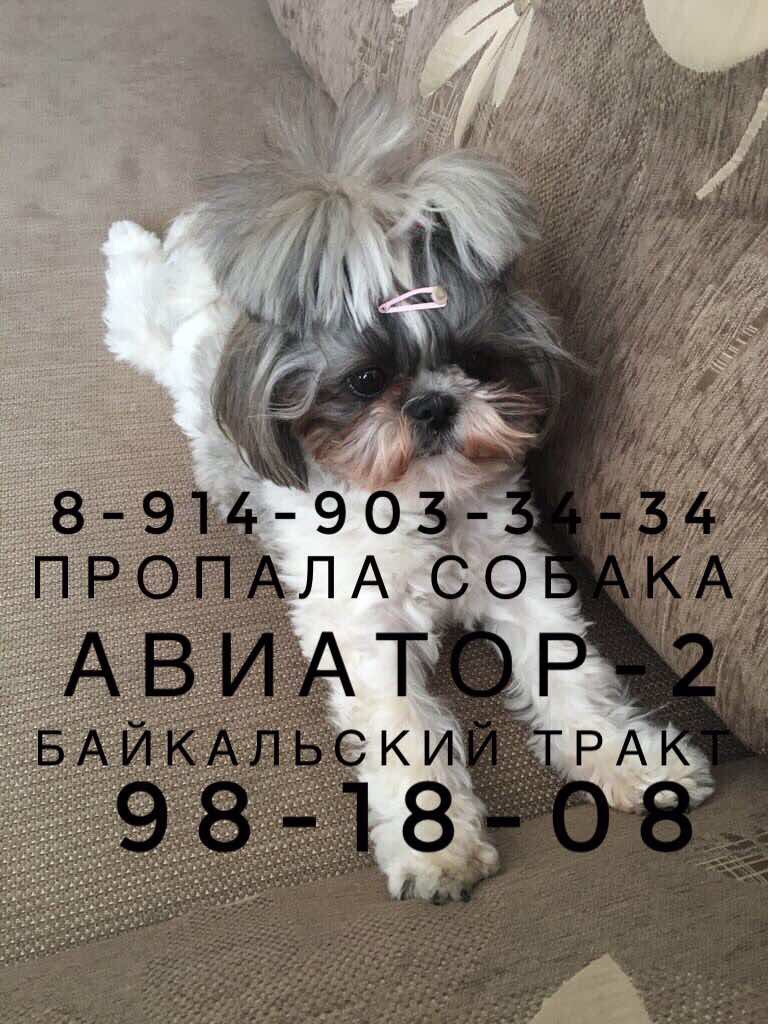 11.07.2017г. В снт. Авиатор-2 украли собаку, порода ши-тцу, кличка Ева, возраст 4,5года, не крупная, окрас белый с серой спиной и боками, на голове серый с рыжим оттенком, между глаз белая проточина, забирали в хвостик, но могли состричь. На данный момент коротко стриженная.