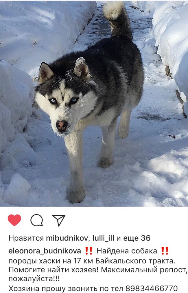 На 17 км Байкальского тракта найдена хаски Тел нашедшего 89834466770