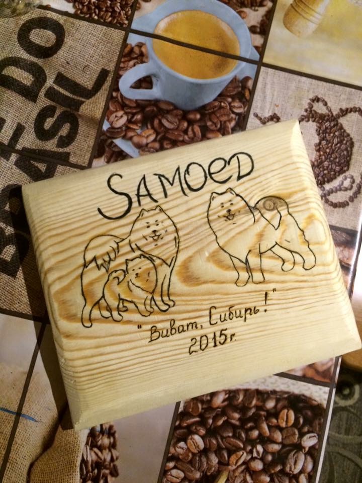 может быть выжигание и покрытая лаком,может быть акриловые краски и покрытие лаком))Пишите в ЛС или 89027673114 ватсап,вайбер