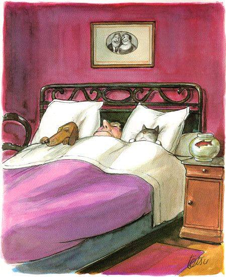 Я не сплю с собаками, потому что сама не храплю, мой муж не храпит, мой сын не храпит, наши рыбки не храпят, и вообще.. Я очень тонко реагирую на малейшие звуки, отвлекающие ото сна, включая вздох и полет апрельской вялой мухи. Особенно меня раздражает сочный храп счастливого пса, утомленного откровенным бездельем в течении дня, будто именно он делал ремонт, клеил эти чёртовы обои, и мыл эту бесконечно грязную квартиру от бесчисленного количества проходящих апрельских лап…