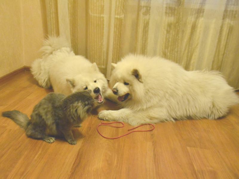 Он сидит возле веревочки с которой они все трое играют. Хотя постоять за себя он действительно может, когда ребята пытаются вместо игрушки им поиграть. Но никогда не дерутся, это троица не разлей водаTanyax писал(а):В сурового котищу вырос Сеня