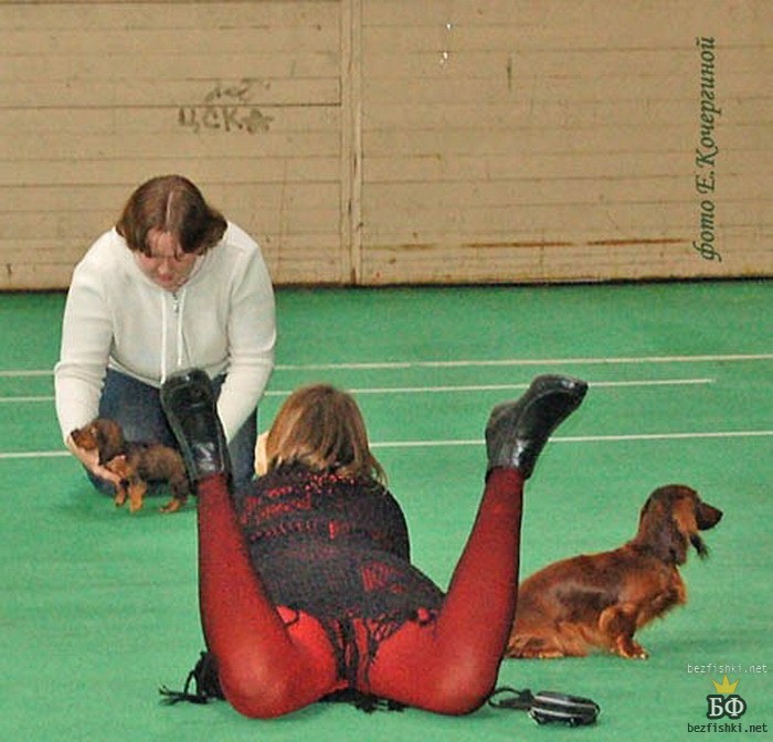 Эксперт останавливает ринг и говорит- мне не нравится как вы все бежите с собаками по рингу, нет синхронности , я не могу определить кто из вас лучше в движении , держитесь рядком, а кто бегать не может выходите с ринга сразу, я не могу головой крутить как юла , мне сравнивать вас надо а не на чехарду вашу смотреть, сенхронно бегите в шаге друг от друга - так пошли девушки я смотрю на вас.