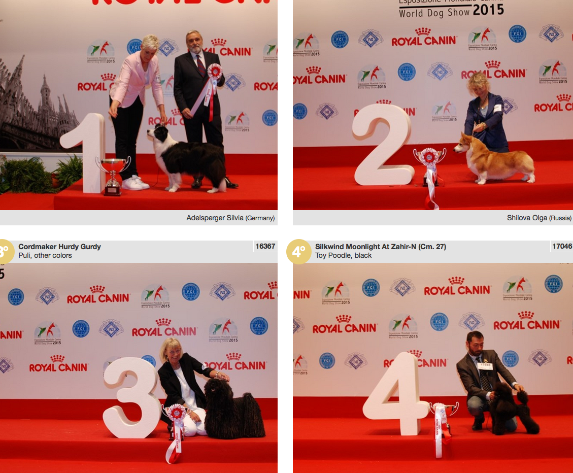 Евгений Купляускас: "Дорогие коллеги, спешу поделиться всеобщей радостью... Несколько часов назад закончилась Всемирная выставка собак в Милане. Впервые в истории РКФ собака из России, - бирдид колли Ольги Климовой, стала лучшей собакой выставки! Прекрасные награды (кубок, специальный приз от FCI, медальон ручной работы в подарок от семьи Сваровски, автомобиль, статуэтка ручной лепки...) приятно дополнили ощущение победы! Ну, а мы, - и судьи, и болельщики, конечно, поздравляли и счастливого владельца, и друг друга.