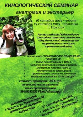 кинологический семинар Ружич Л. В. 16-17 сентября 2017 г.
