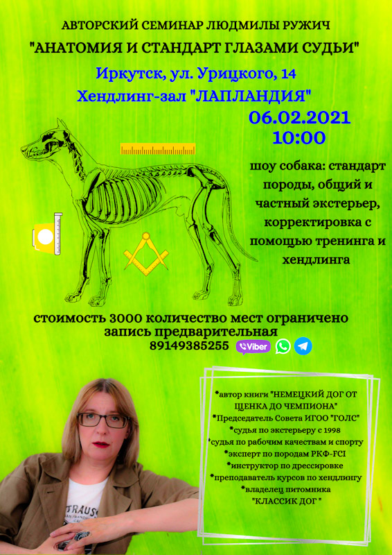 Знание анатомии, понимание стандарта, четкие и понятные рекомендации по выращиванию, питанию, физической подготовке и хендлингу - помогут Вам вырастить чемпиона!