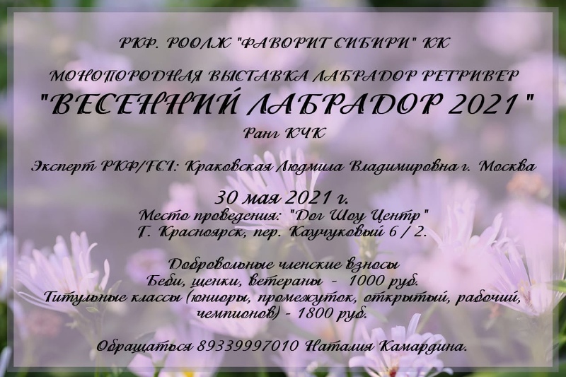 FCI,РКФ,РФСС,РООЛЖ «ФАВОРИТ СИБИРИ»КК