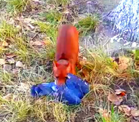 Это поздней осенью возле дома из огромной кучи голубей Фенька выловила сначала одного,потом в лесу ещё одного,ели-ели отняла,она его уже потрошить начала,100% съела бы.