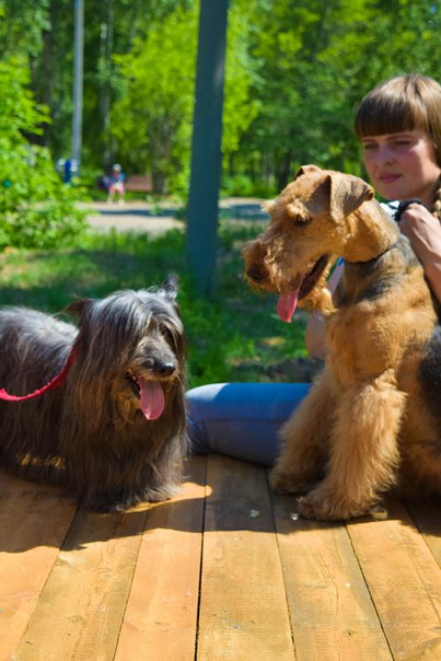 Старшую эрдельку не решилась в жару из дома вытаскивать.