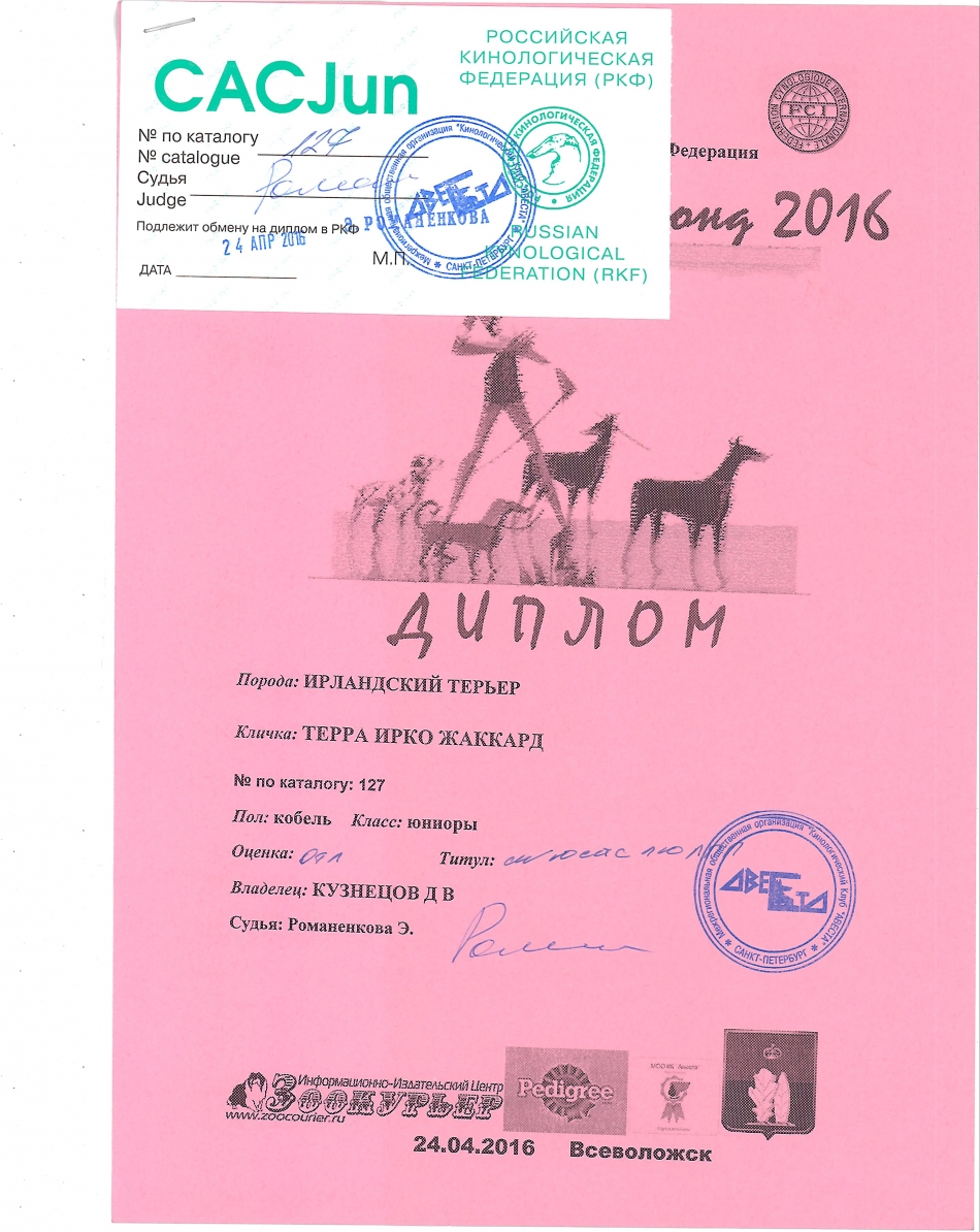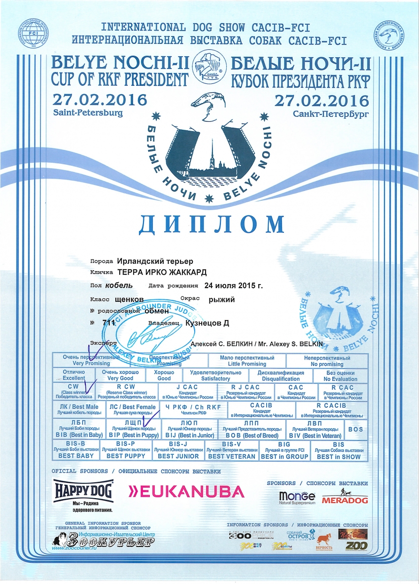 "Датой определения возраста собаки является день экспонирования собаки на выставке."Irbis писал(а):P.S.Но конечно есть маленькая ложка дёгтя, чтобы Реджи мог участвовать в классе юниоров ему должно было быть 9 мес 23 числа. Так что есть вероятность, что результат могут не зачесть.