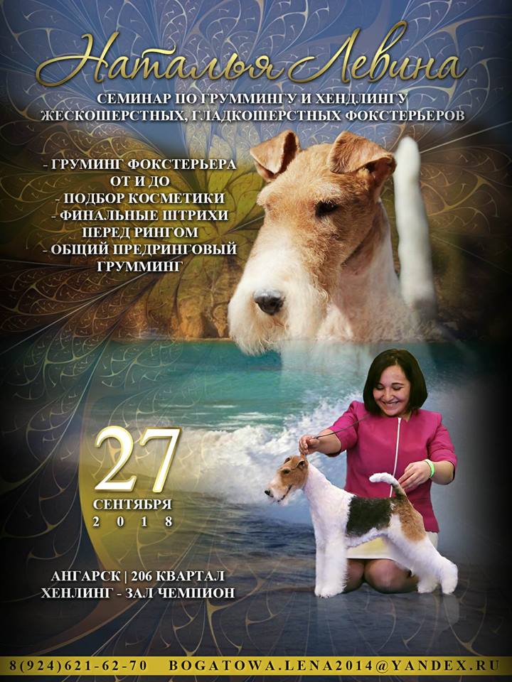 Добрый день!!!!27 сентября в г.Ангарске будет проводится семинар по грумингу (хендлингу) с Натальей Левиной!(г.Санкт-Петербург)Хендлер ,грумер,владелец Питомника фокстерьеров ж/ш,г/ш "Скрим Дрим "!!!!!Можем Вас добавить в группу.