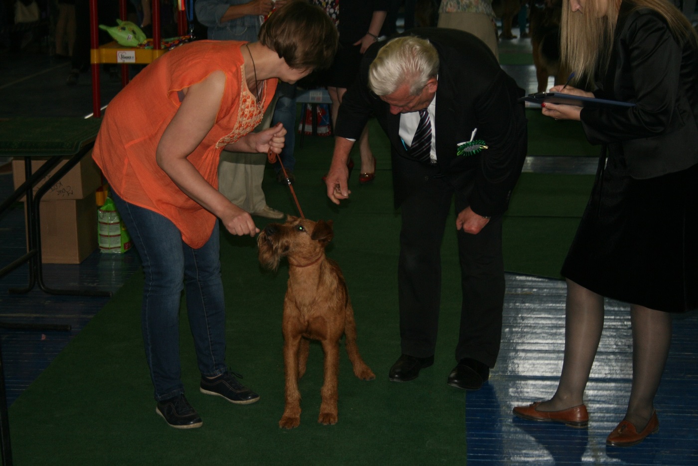 Подготовка к рингу, прямо за 2-3 минуты до него: 1) - нужно проверить, в порядке ли одежда (нарядная, соответствующая этому торжественному дню) и висит ли на ней номерок, 2) - нужно проверить, в порядке ли собака. Я стараюсь прямо перед выходом в ринг еще раз причесать голову т.к. это прямо все для некоторых судей - увидели в ринге точеную голову и терьерский взгляд, многое готовы простить за это. И 3) - самое главное, нужно вспомнить, прямо до мелочей...самый свой громкий проигрыш или самый худший показ! Мандраж выключает "на раз" и становится так забавно, в ринг выходишь уже с улыбкой и на каждую стойку или красивую пробежку собаки просто любуешься, реально гордишься, что собак себя так хорошо в ринге ведет.