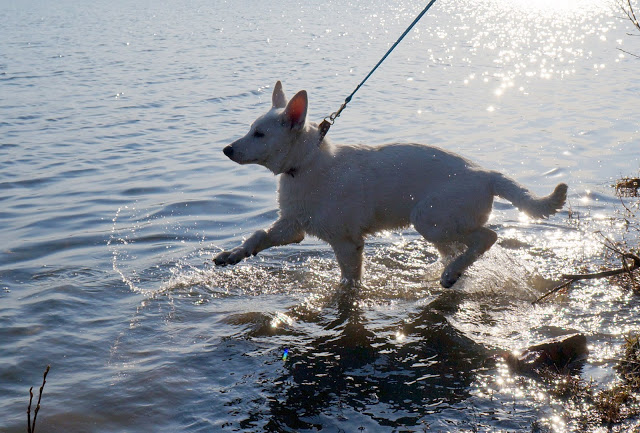 первое знакомство щенульки с водой