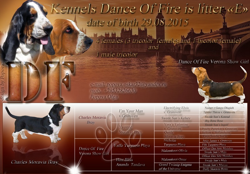 Наш питомник "DANCE OF FIRE" предлагает для резервирования щенков породы Бассет Хаунд от молодой ,красивой ,титулованной родительской пары.