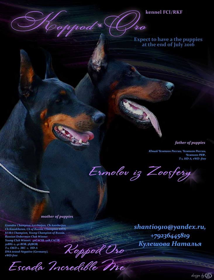 предлагаются высокопородные щенки добермана , дата рождения 22 июля 2016 ,кобели все ч/п
