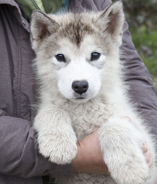 Теперь перейдем к общению с человеком. Щенки не сидят предоставленные сами себе в клетке или вольере. До 2 недель они находились со своей мамой в доме, в непосредственной близости со мной. Надо было следить, чтобы мама их не задавила нечаянно, надо было часто брать их в руки, чтобы они привыкали к рукам человека, и не ожидали ничего плохого от этого действия. После того, как щенки открыли глазки, мы стали давать их в руки нашим посетителям ( не торопясь, без резких движений, нежно). Когда щенкам исполнился месяц, они, видя или слыша человека, гурьбой устремлялись к нему, окружали и ждали внимания к себе. За наш десятилетний опыт работы с маламутами, мы убедились, что такое воспитание щеночков формирует настоящий "маламутский характер", делает собаку доброй и приветливой в отношениях со всеми людьми.