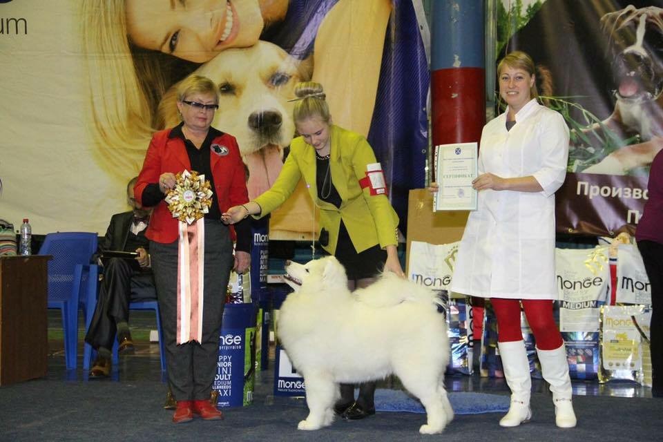 Ещё один мой личный самоед Астон,с него все начиналось,это моё сокровище!Мой ворчун,моя личная победа :yahoo: Айсу 6 лет,юный Чемпион России,чемпион России,чемпион НКП,Гранд Чемпион России,неоднократный победитель монопородных выставок :hi: