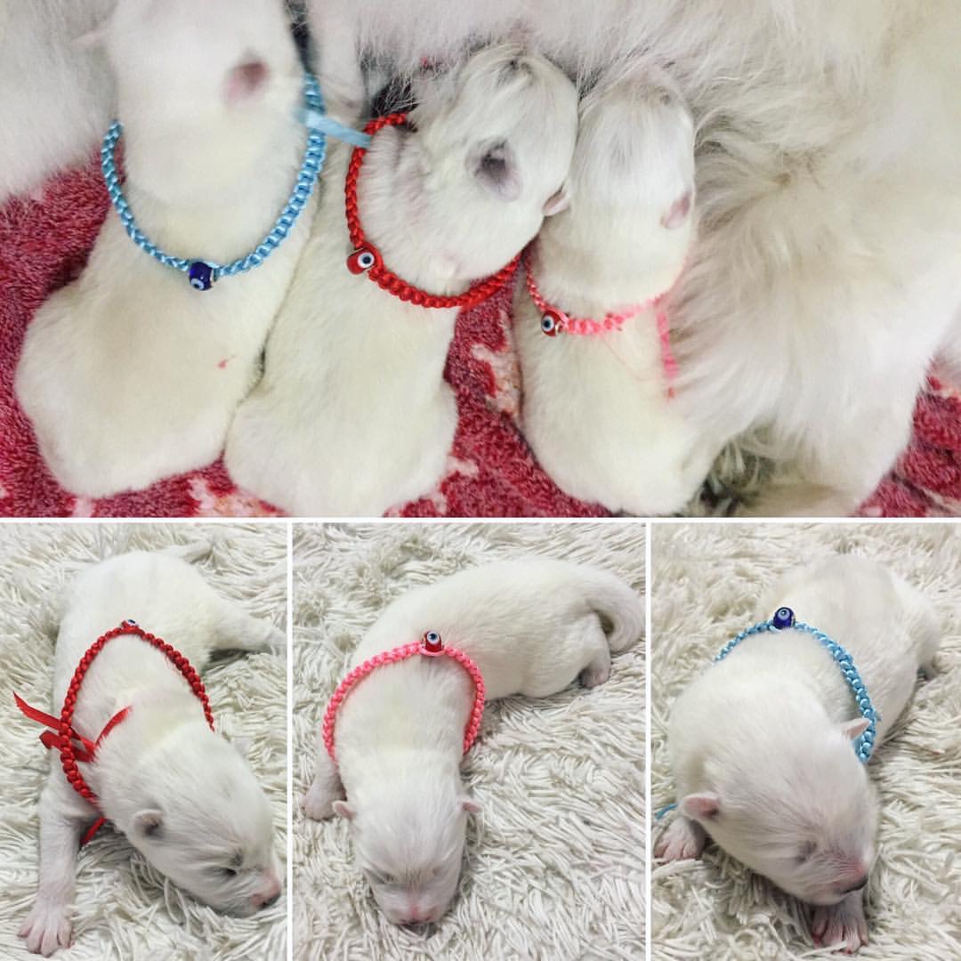 Первый помёт "А" ,хозяева и щеночки после актировки .