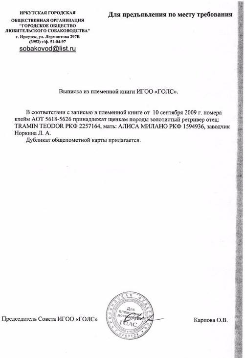 ElenaK писал(а):Это выписка из плем книги (ИГОЛС), подтверждающая КЛЕВЕТНИЧЕСКИЙ характер информации