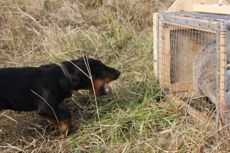 Для притравки норных приготовлена имитация норы, где собака сможет найти и потрепать свежую лисью шкуру.