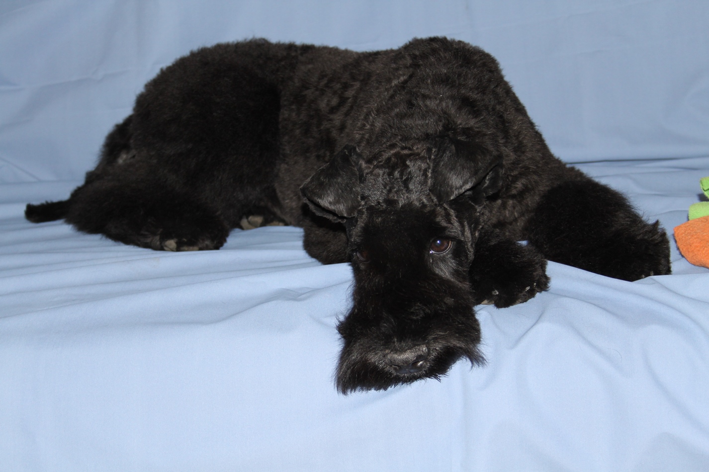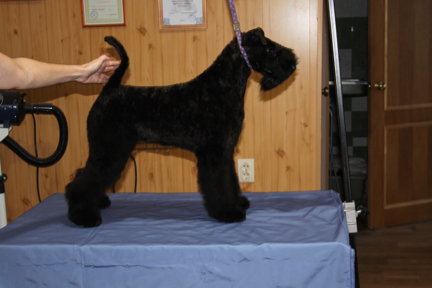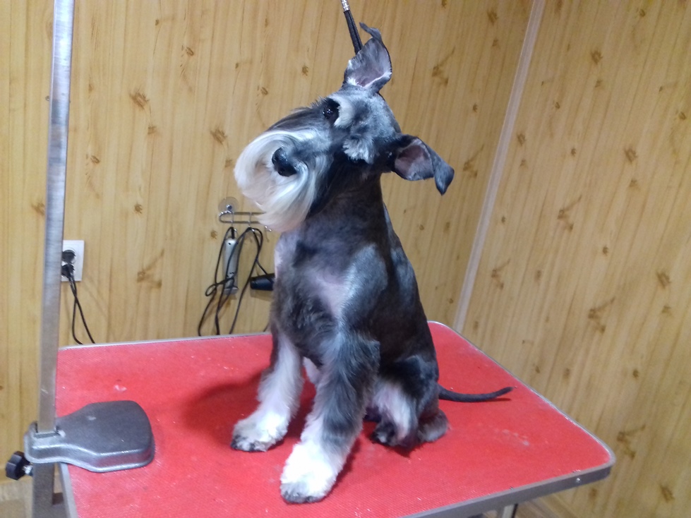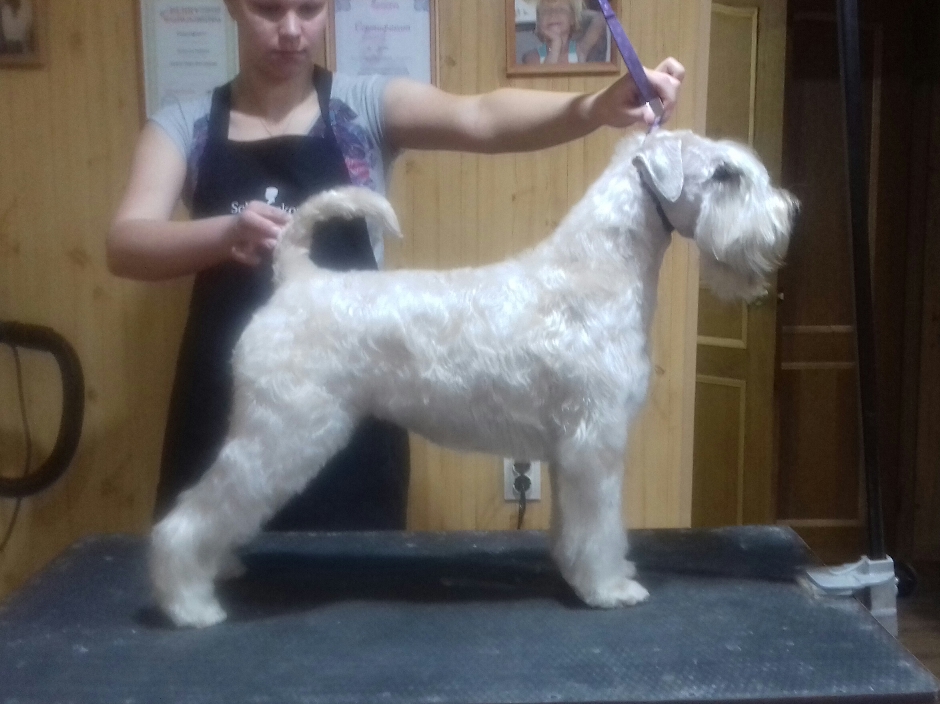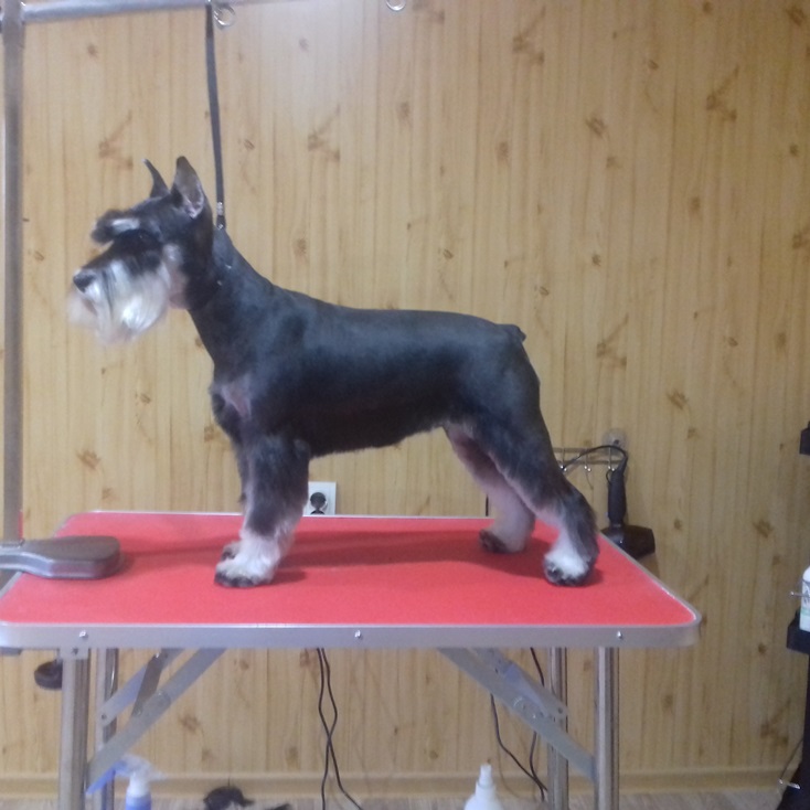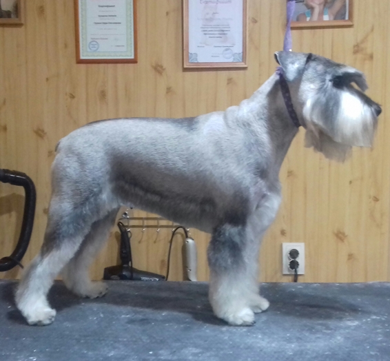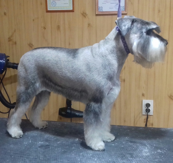 Марина, добрый день! Спасибо, за то, что оценили мою работу! Сейчас объясню свою позицию по поводу триминга цвергов. Когда мне звонят владельцы, я по телефону подробно расспрашиваю, что они хотят сделать со своей собакой. И терпеливо объясняю им, чем отличается шерсть стриженая от выщипанной. Я объясняю также, что нельзя чередовать стрижки и триминг. Или мы собаку всегда тримингуем или переходим на стрижку. Спрашиваю, планируют ли посещение выставок! Часть шнауцеров тримингуется, посмотрите выше, я размещала фото и цверга и миттеля. И выщипываем мы все: и уши, и горло, и прощипываем ноги. А есть владельцы, которые не хотят ждать, когда у их любимца шерсть созреет для триминга. Они хотят, чтоб шнауцер был опрятный и в короткой шерсти всегда! Ходят раз в 2-3 месяца. Чаще всего, после такого перерыва шерсть к выщипыванию не готова, и, честно скажу, мне больно делать собаке не хочется. Есть еще одна причина. Собаки с чувствительной кожей. Сколько ни щипай, собаке больно во время триминга, и обязательно кровоподтеки и воспаленная кожа. Владельцы это видят и, конечно, жалеют своих собак. И я их понимаю! Кобель, размещенный выше, ходит часто, вообще раз в 1,5 месяца.