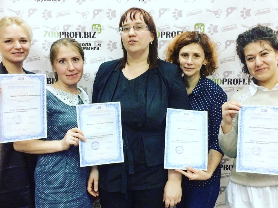 Все обучающиеся, после прохождения курса по утвержденной программе (в объеме 72 часов) и успешно сдавшие теоретический зачет и практический экзамен, получат Сертификат Учебного Центра Союза Предприятий Зообизнеса (Лицензия Департамента образования города Москвы № 036159 от 30.04.2015г.) о дополнительном профессиональном образовании с присвоением квалификации «ГРУМЕР-СТАЖЕР»
