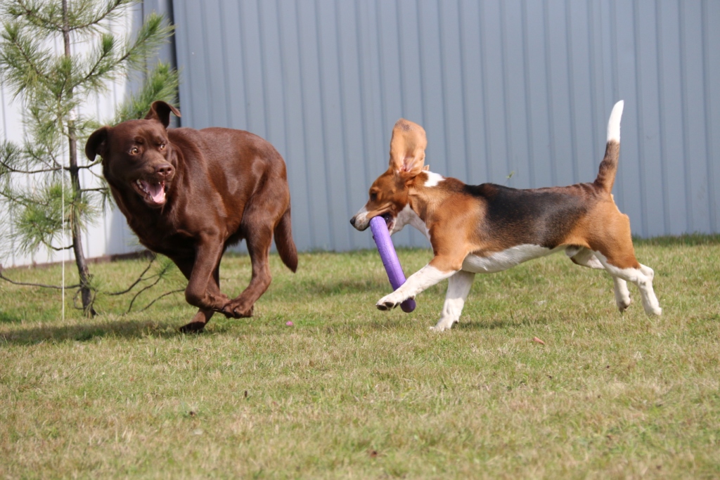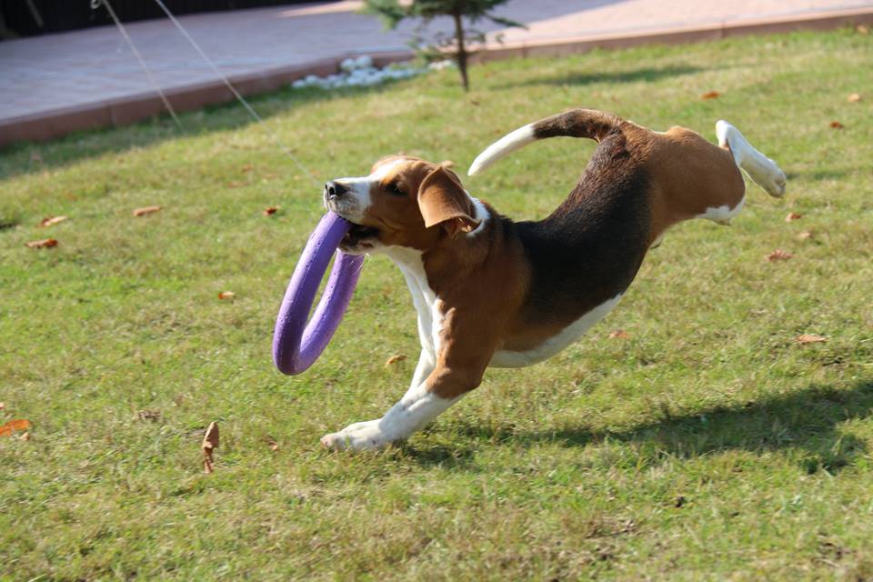 4.Вито доминантный кобель! Чико от него конечно достаётся, Вито если забрал игрушку, то всё, будет отстаивать рыком своё право на обладание. Задирается постоянно, устраивая гонки по дому и участку, чем держит Чико в хорошей физической форме. За что ему, огромное спасибо! На тренировках и выставках Вито слышно издалека. Своим бигле-голосом он оповещает всех, что пришёл. Незнающим людям кажется, что собаку убивают. Действительно, голосок ещё тот! Самое интересное, на мелких собачек он внимания почти не обращает и все его песни адресованы исключительно собакам серьёзной весовой категории.