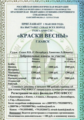 Дорогие участники выстовки обращаемся с просьбой проверить информацию по зарегистрировавшимся собакам. Все вопросы прошу направлять на эл.адрес