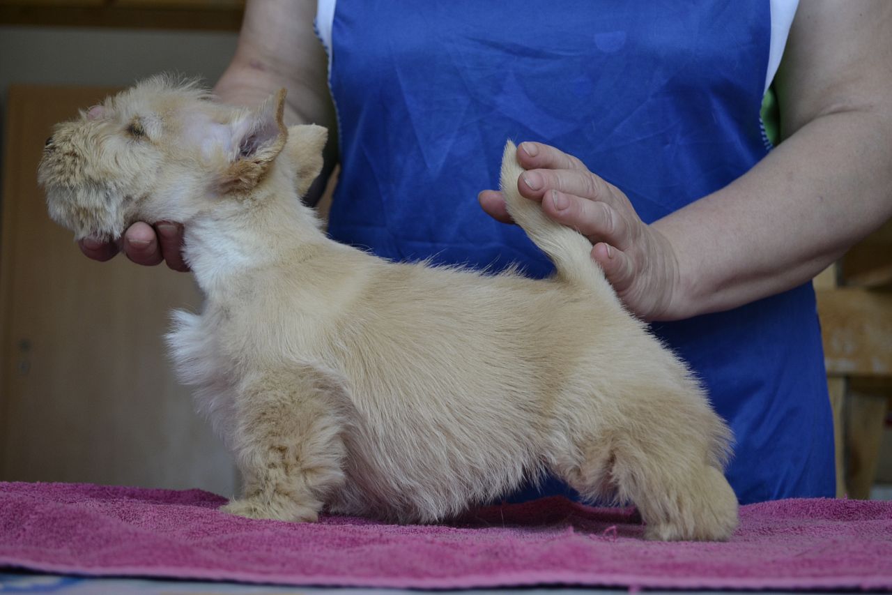 Племенной питомник "из Черной Дружины" предлагает щенков скотч терьера рожд. 27.01.14. Три суки(2-пшеничного окраса, 1-тигрового окраса) и кобель тигрового окраса. Родословная, клеймо. щенки кс хорошим костяком, широкие, глубокие.