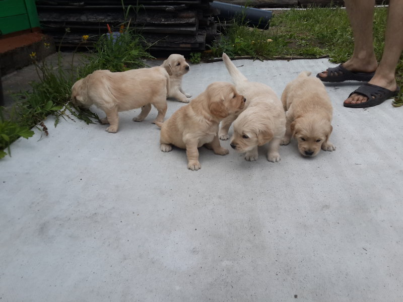 Щенки породы золотистый ретривер. Дата рождения 25.05.2014г. В помете 5 щенков - 3 кобеля и 2 суки.