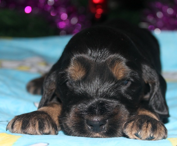 В этом помёта - два парня: один - чёрного окраса, один - чёрно-подпалого (затемнённый) окраса, который -