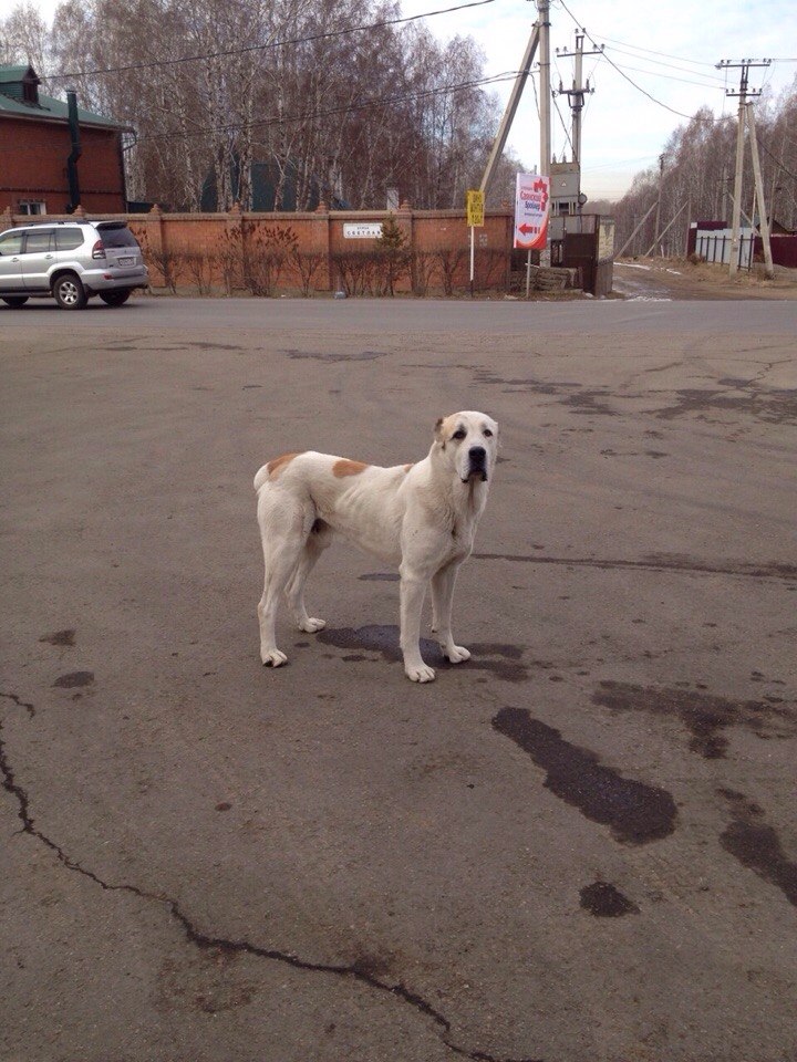 Найдена собака в районе Ново-Разводной (около автомойки), среднеазиатская овчарка, мальчик, окрас: бело-палевый. Собака домашняя, уже больше не дели не может найти дорогу домой