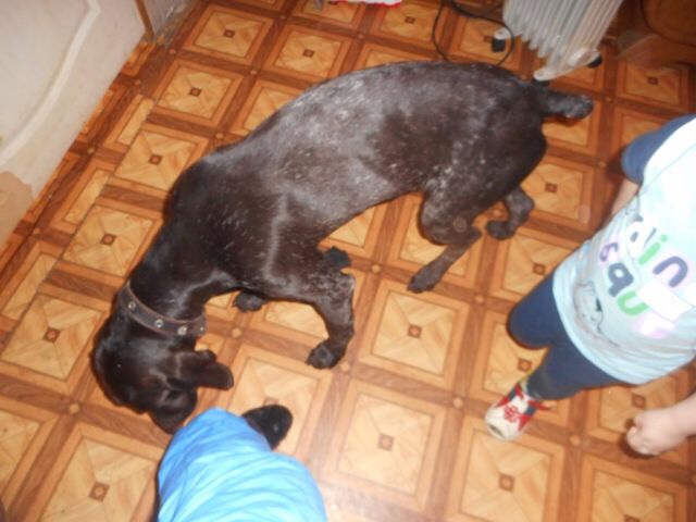 С соцсетей: найден курцхаар, девочка, с клеймом. Ищем хозяев. Собака в ошейнике. тел 89247017646 Ольга