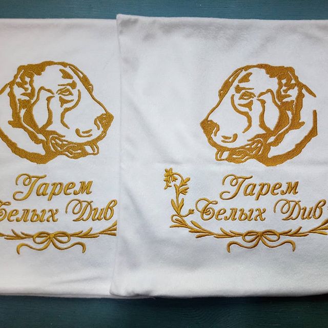 Недавно заказали набор наволочек для подушек с названием питомника. Вот такие получились)) Сделаны из велюра, с потайной молнией.
