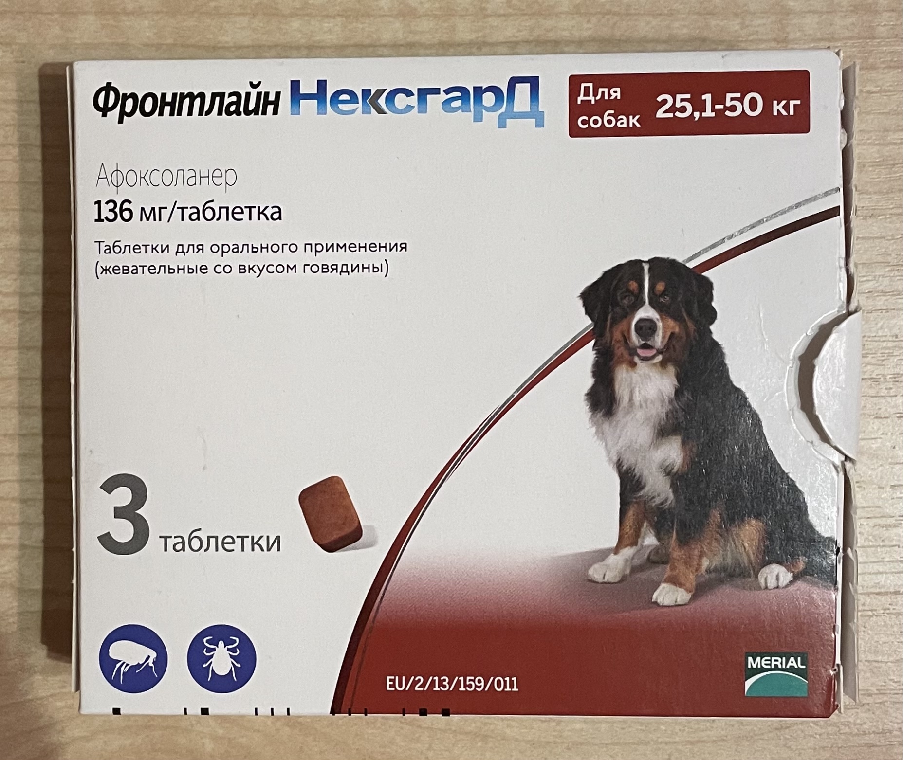 Для собак 25,1-50 кг. упаковка из 3-х таблеток - 1289 руб. + 1 таблетка из другой коробки - 429 руб. (срок годности до 06.2023)
