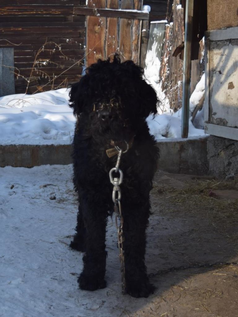 Собака Сталина в дар хорошему и волевому человеку!!! Русский черный терьер Абай ищет дом! Возраст 3 года. Рост в холке 75 см. На первом фото РЧТ в выставочном ухоженном варианте (это фотография не нашего героя, фото взято из интернета). Обратите внимание на размеры собаки! Все остальные фотографии настоящие. Требуется много сил и воли на дрессировку. Собаке нужна любовь, забота и терпение. Абай снова должен поверить в Человека после предательства, которое ему пришлось пережить. Уж очень много плохого он видел в жизни у прежних хозяев. Абай попал на передержку к Юле Львовой из приюта "К9" в ужасном состоянии. Туда его сдали хозяева... Юля: "Когда я его в первый раз увидела, даже не могла понять где попа, а где голова...." Пса случайно заметила в приюте одна очень хорошая девушка, которая приехала выбрать себе собаку. Она была шокирована состоянием и видом пса: шерсть - один сплошной колтун, пёс был очень истощен, под огромной шубой из шерсти, грязи и испражнений практически был один скелет. Плюс ко всему он был сильно простужен. Сейчас пёс в отличном состоянии! Очень много сил Юля вложила в его восстановление и реабилитацию. Звоните добрые и волевые люди! Абай находится на передержке в Ангарске. Возможно, что придется ходить к нему сначала в гости и разговаривать с ним, угощать, пока он не станет Вам доверять. Русские черные терьеры - интеллектуалы. Они очень умные. Это собака одного хозяина: никогда не предаст! Его сердце надо завоевать! К нему надо найти подход. Агрессивен и недоверчив. Елена: 8 914 876 11 05. Юлия: 8 908 655 76 36.