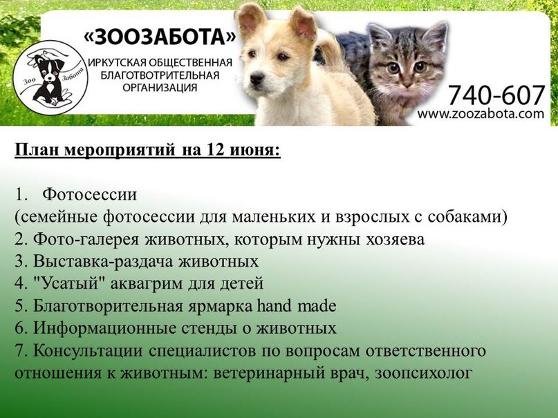 2. Мы так же помогаем приютам Иркутска пристраивать их питомцев, через фотографии в наших альбомах и на нашем сайте www.zoozabota.com
