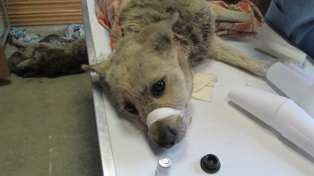 Собаки за последние два дня... Девочку привезли с промзоны с удавкой проволокой на шее, кто-то хотел ее съесть... Несколько дней она с этой проволокой и ходила, пока Оксана, Алла и Татьяна не вызвали отлов и не привезли к врачу. Спасибо, что Вы есть! Собачулю назвали Фросей, очень уж вид у нее "фросистый", больше всего на свете она боится людей(((. Глубокая рана на горле, истощение, глаза полные боли и ужаса. Вчера не пила и не ела,только скалилась, сегодня смилостивилась - покушала))). Колем антибиотики и иммунку, обрабатываем рану.